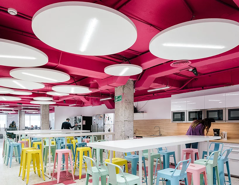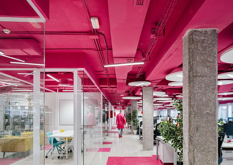 設計團隊選擇通過應用“歡樂的色彩”來活躍辦公室裝修效果。靈感來自建筑物的地下室,最近被涂成了明亮的檸檬黃,設計師決定將這種顏色的使用擴展到所有樓層。