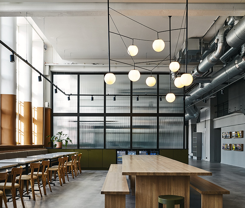 6米高的工業空間,辦公室裝修總面積1500平方米,分為公共和私人區域,以確保不同層次的互動。在入口處,大堂和咖啡廳等公共空間鼓勵員工和顧客交往。會議室位于通向后方的長廊上。這里和二樓閣樓上都是專門為員工提供的空間。