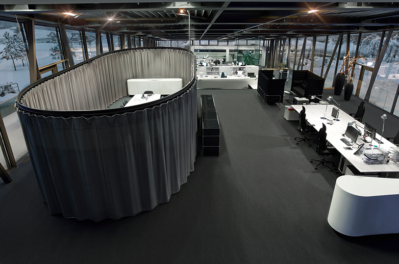 內(nèi)部概念輕松地允許創(chuàng)造新的工作世界。因此,只有在需要的時候,討論空間才會出現(xiàn),一個全方位的幕布會產(chǎn)生一個封閉的空間。