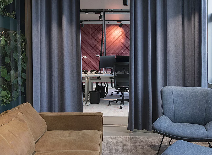 易于使用的移動空間分隔器使團隊可以毫不費力地設置移動或開放空間辦公室。辦公室裝修中雖然有單獨的房間進行集中工作,但空間仍然可以保持視覺連接。